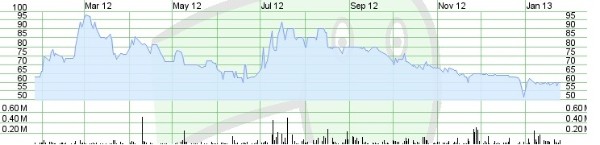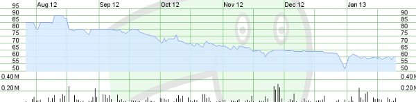 Bougainville Copper Limited (BCL) ISIN : PG0008526520 Charts: ASX Sydney (BOC) 6 months until 26.01.2013