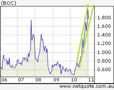 Aus all dem schließe ich, dass unsere Aktien etwa Mitte dieses Jahres zu 3.00 AUD gehandelt werden.  Selbst wenn man technische Rückschläge einkalkuliert, ist der heutige Preis immer noch interessant oder vielleicht gerade deshalb sogar ein „Schnäppchenpreis“.