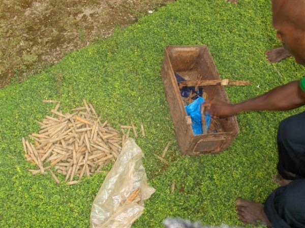 Old small arms ammunition is collected and cleaned by some
