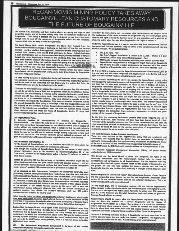 One of this is the drafting of the ABG Mining Act. This draft Act, which was made in Buka and not Australia (as what some people have been saying), will benefit both the landowners and the people of Bougainville.