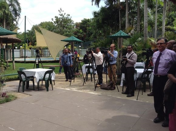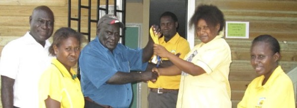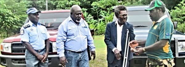 A small reception with a celebration was held today to mark the arrival and delivery of the dump trucks in Buka today.
