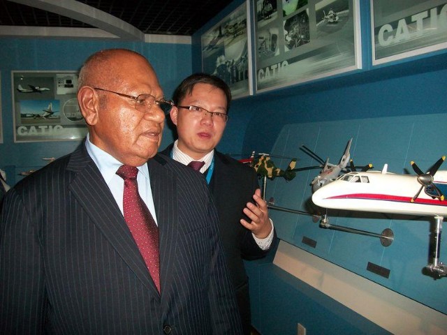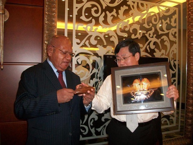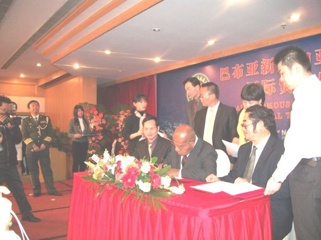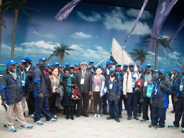 President Momis and his delegation visited the CHINESE PAVILION and the Pacific Pavilion including PNG. They were able to present some CDs and performance on Bougainville culture.