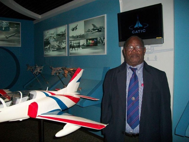 Pictured is President MOMIS admiring a Model Plane at the Plane and Ship Builders headquaters in Beijin.