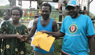 The ABG minister for Public service, JOEL BANAM yesterday afternoon officially handed over the body of the late THOMAS ANIS to the family at the Hahela church in Buka.