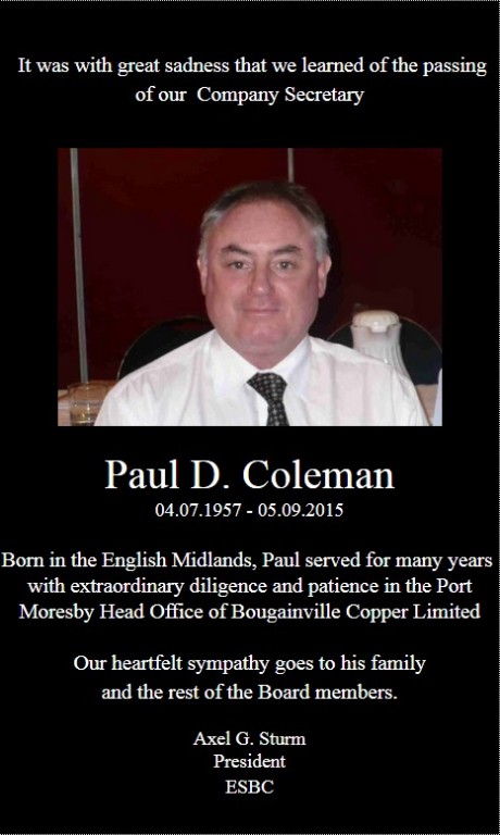The BCL board of directors, expressing deep sadness at his death, said that Paul “was integral to the restoration of dialogue between the Autonomous Bougainville Government and BCL” and paid tribute to his activities in community and philanthropic activities in PNG.