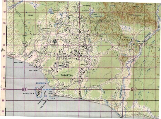 The bridgehead at Torokina was expanded to become a large base, complete with three airfields, as seen in this 1944 map